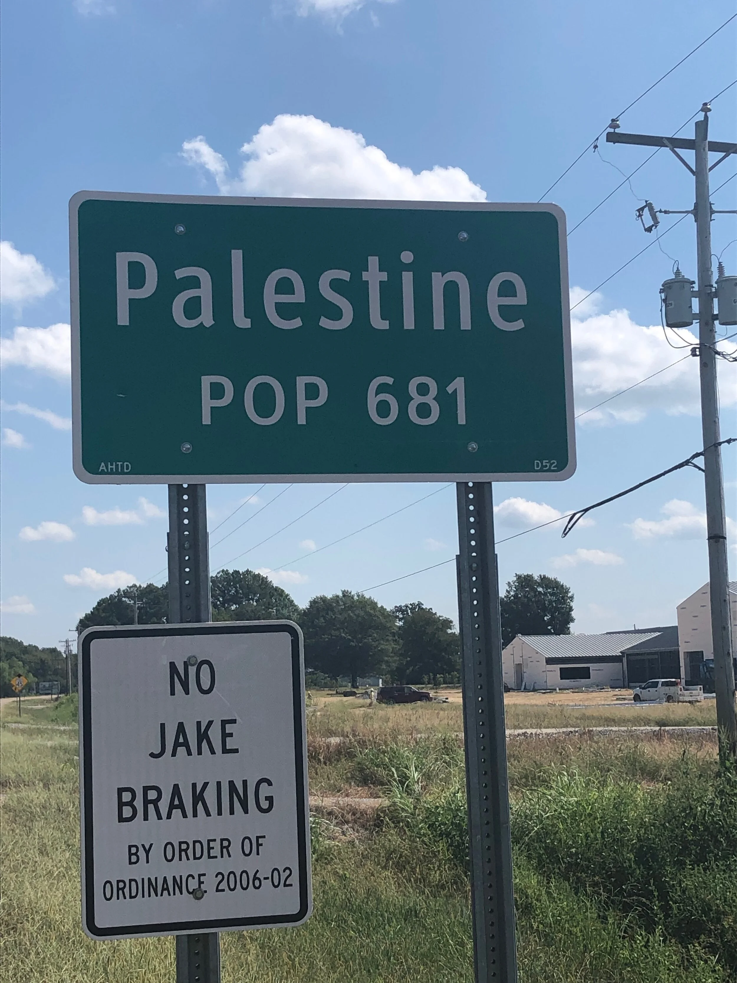Walked through Palestine… again. For a split-second I thought I might have gone right instead of left and walked 396 miles back to Palestine TX… dang, just looked it up - that’s a long way. And there’s that other Palestine, tough to walk there.
